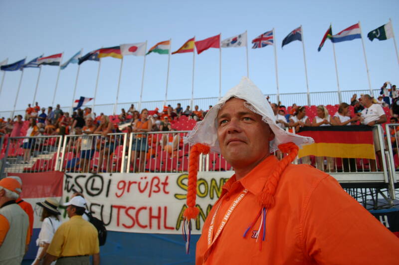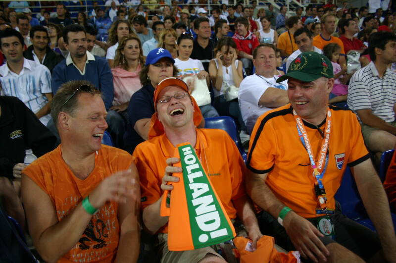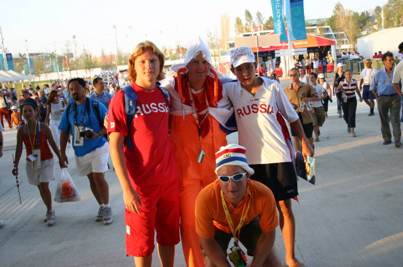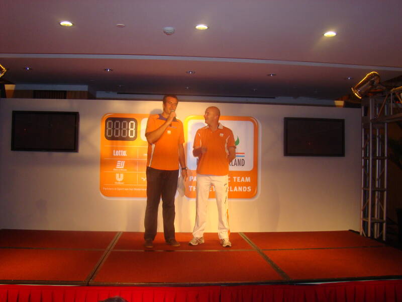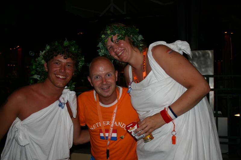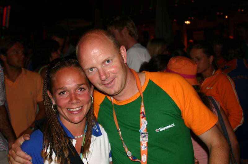 "Kom je dan eigenlijk veel mensen tegen uit andere landen en gaan die dan een praatje met je maken?" Natuurlijk!! Gewoon op straat of in het stadion of anders wel in het Holland Heineken House. "Maar dan ga jij als directeur dan ook in het Oranje gekleedt en heb jij ook van die rare hoedjes op?" Dat is nou de beleving van de Olympische spelen! Alleen maar sportliefhebbers om je heen!