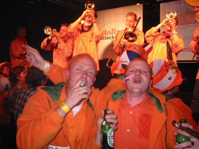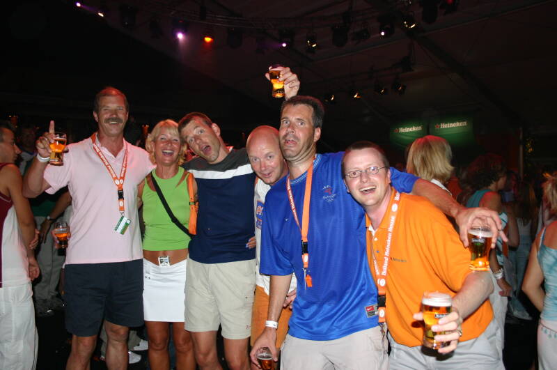 En zo gebeurde het dat er dagelijks Amerikanen zich kwamen melden bij mijn koffer met Nederlandse hoedjes, pruiken, opblaasprodukten en andere prullaria om zich om te kleden als Nederlandse supporter. Toen de amerikanen na een aantal dagen doorkregen in het Holland Heineken House, dat het omkleden als nedelandse supporter geen stelregel bleek te zijn, was de hilariteit groot. Er kon gestopt worden met het leren van het Wilhelmus! Sportief kwamen ze de dagen daarop toch steeds weer verkleed als Nederlandse fan naar het Holland Heineken House. Dan weer met vrienden en dan weer met een collega, iedereen was welkom! De amerikanen zijn vrienden geworden en komen regelmatig naar Nederland en ik ben verschillende keren na de Olympische spelen, altijd welkom geweest in Salt Lake City. Het Holland Heineken House verbroederd!